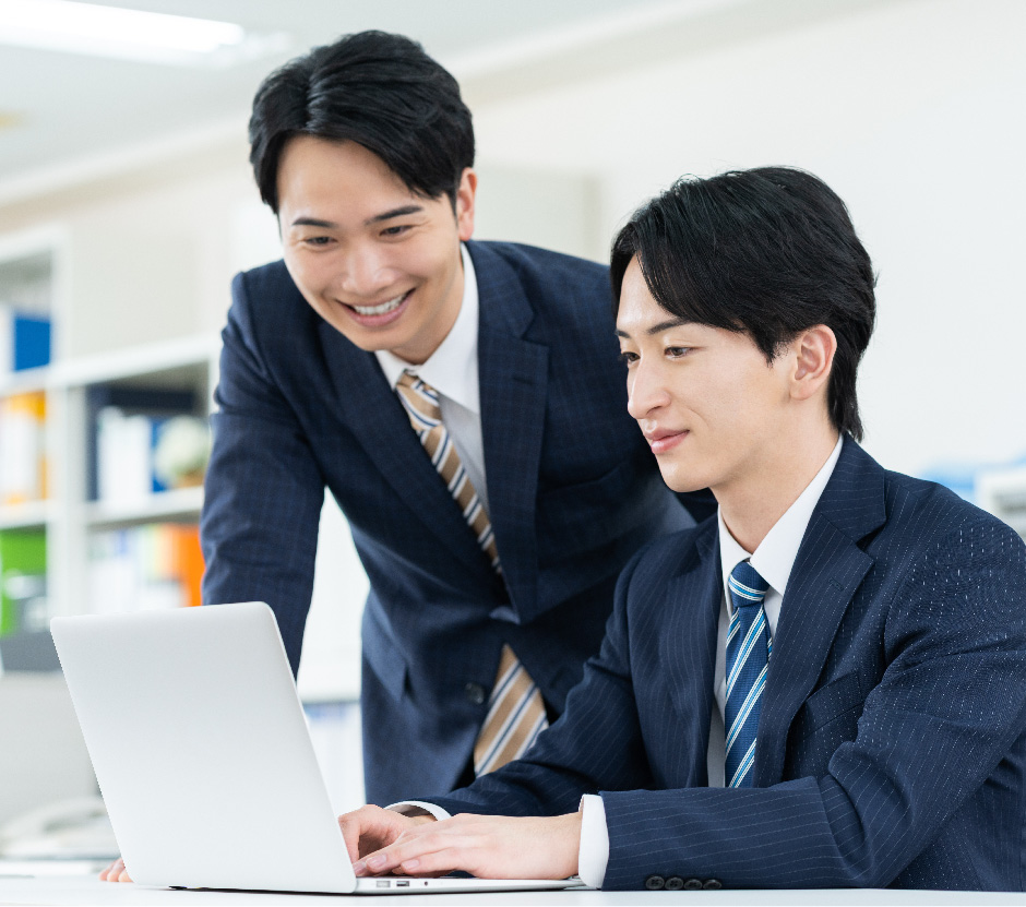 当社の育成の中心は、現場での経験を通じて学ぶOJT(On the Job Training)研修です。先輩や上司からタイムリーにフィードバックを受けることで座学だけでは身につかない実践力を養います。早期から実務に触れ、成功・失敗体験を積み重ねることで、自ら考え行動できる力を培い、成長スピードを加速させることができます。